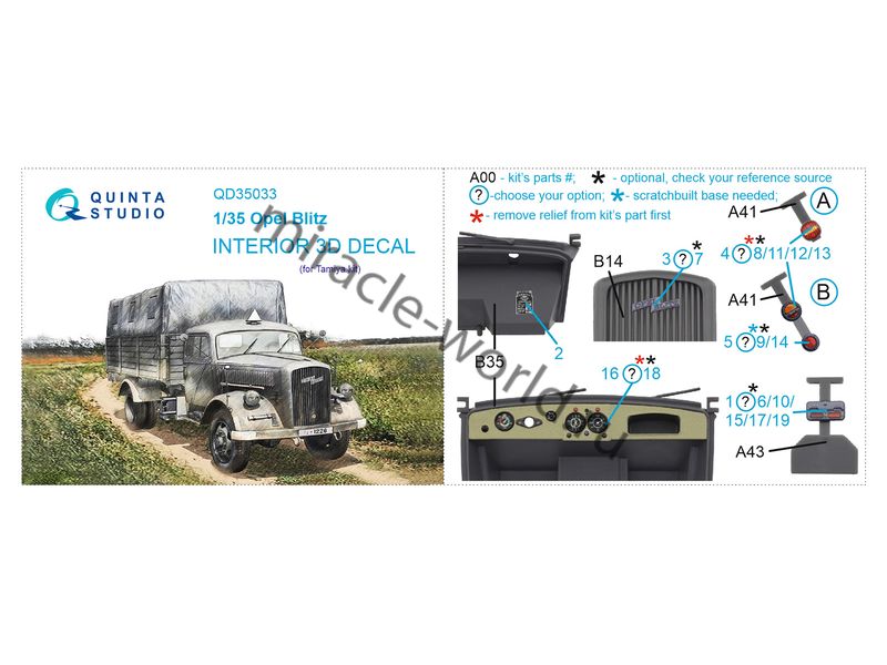 Quinta QD35033 3D Декаль интерьера кабины Opel Blitz (для модели Tamiya) 1/35