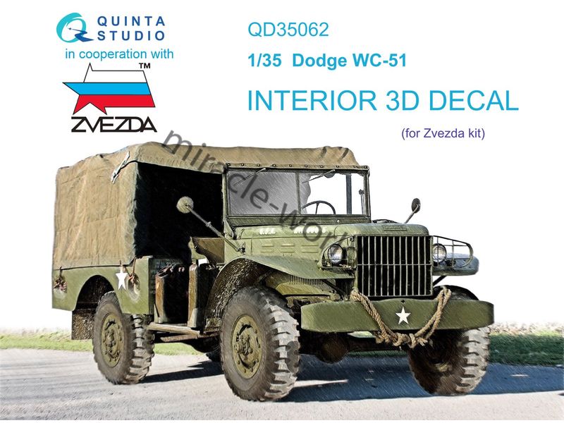 Quinta QD35062 3D Декаль интерьера кабины Dodge WC-51 (для модели Звезда) 1/35