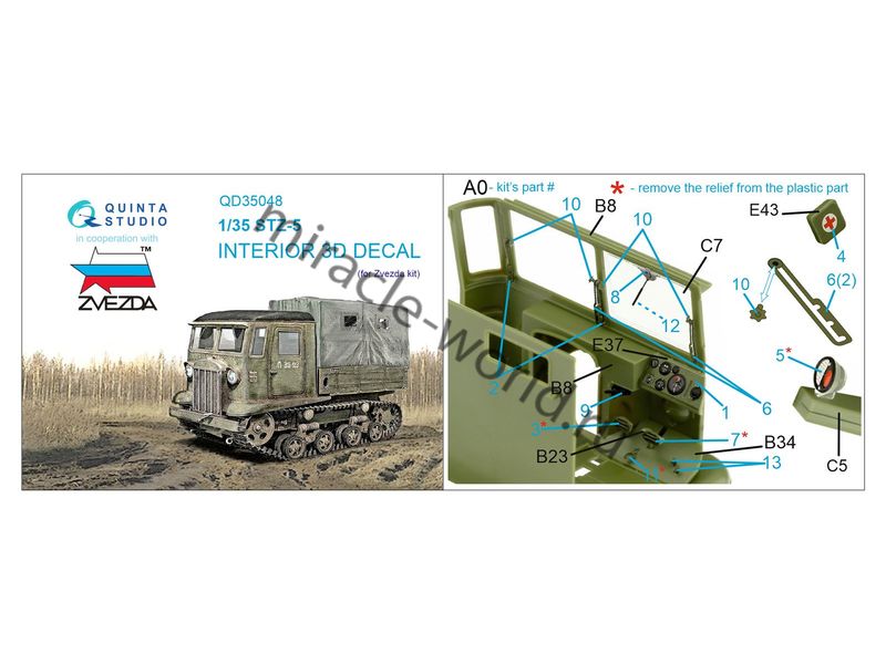 Quinta QD35048 3D Декаль интерьера кабины СТЗ-5 (для модели Звезда) 1/35
