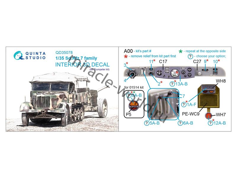 Quinta QD35078 3D Декаль интерьера кабины для семейства Sd.Kfz.7 (для модели Trumpeter) 1/35