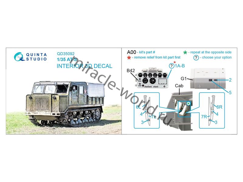 Quinta QD35092 3D Декаль интерьера кабины АТ-С (для модели Trumpeter) 1/35