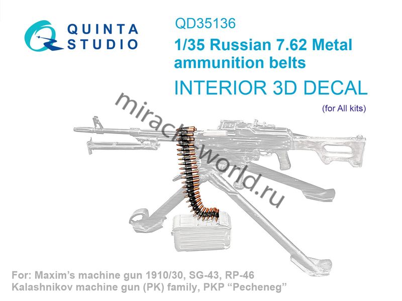 Quinta QD35136 3D Декаль российская/советская патронная лента с метал. звеньями под патрон 7.62 1/35