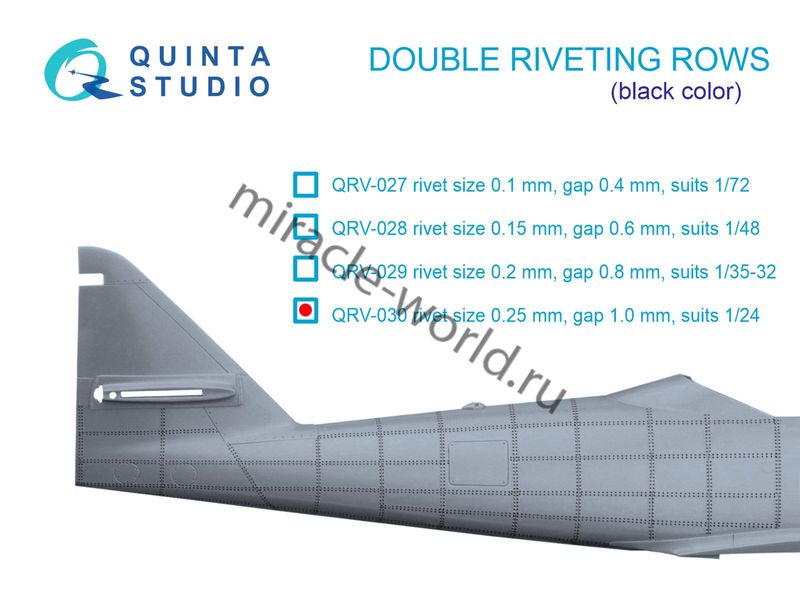 Quinta QRV-030 3D Декаль сдвоенные клепочные ряды (размер 0.25-мм, интервал 1.0-мм, черные) 1/24