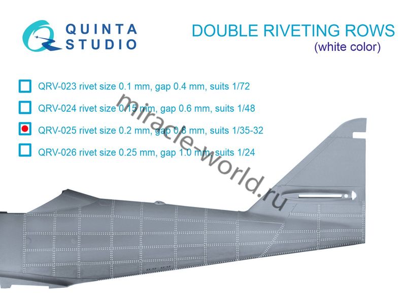 Quinta QRV-025 3D Декаль сдвоенные клепочные ряды (размер 0.20-мм, интервал 0.8-мм, белые) 1/32