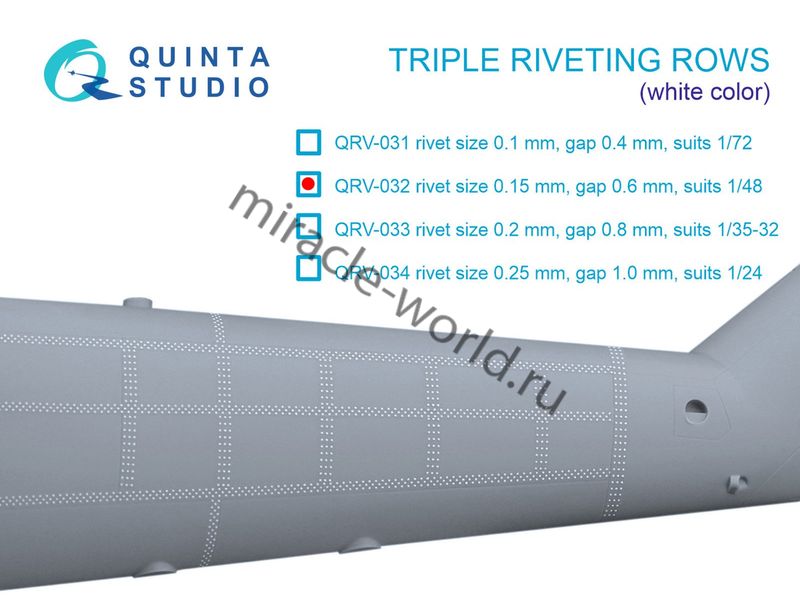 Quinta QRV-032 3D Декаль тройные клепочные ряды (размер 0.15-мм, интервал 0.6-мм, белые) 1/48