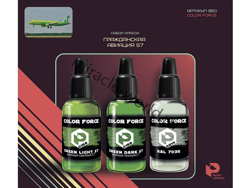 Pacific88 950 AERO Набор красок Гражданская авиация S7 (0158, 0159, 0214)