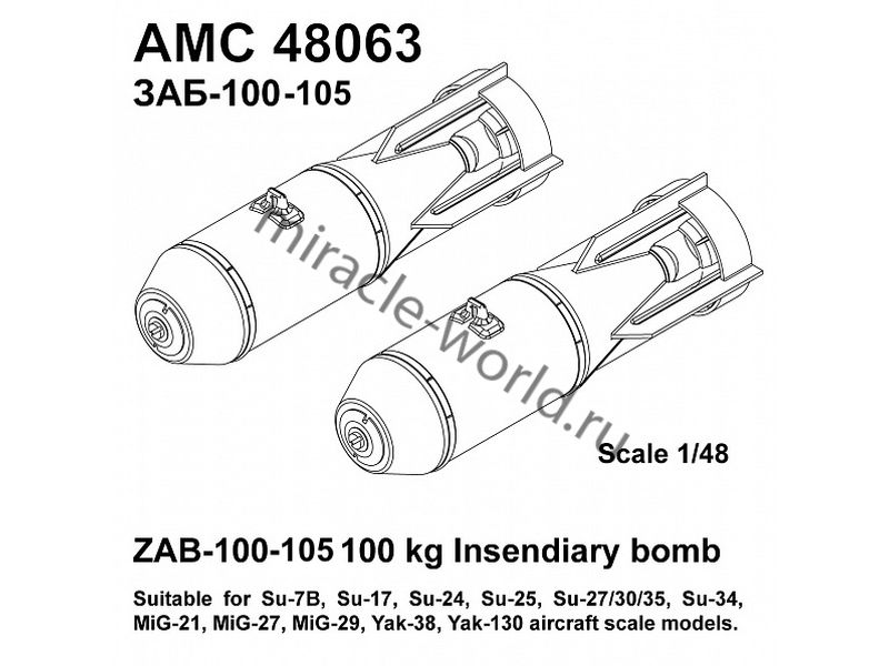 AM AMC 48063 ЗАБ-100-105 (6шт.) /зажигательная авиабомба калибра 100кг./ 1/48
