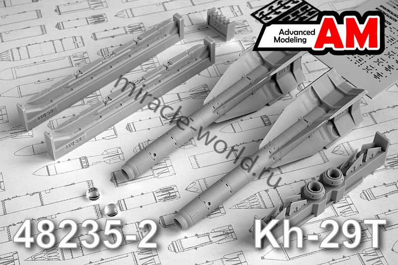 Дополнение для сборных моделей советской / российской авиации (ВКС) Х-29Т Авиационная управляемая ракета класса «Воздух-поверхность» » c авиационным катапультным устройством АКУ-58 (2шт. в наборе + пусковые установки + фототравление + декали) в масштабе 1/48 от фирмы Advanced Modeling (артикул 48235-2).