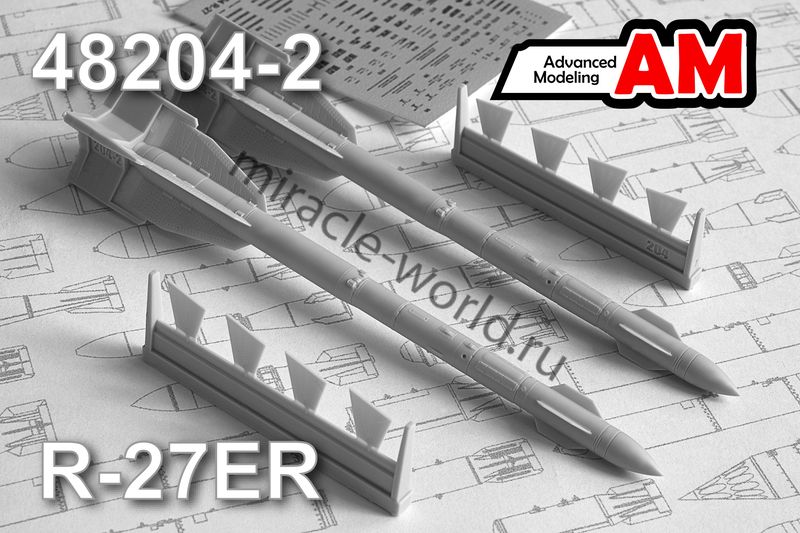 Дополнение для сборных моделей советской / российской авиации (ВКС) Р-27ЭР Авиационная управляемая ракета класса «Воздух-воздух» (2шт. в наборе + декаль) в масштабе 1/48 от фирмы Advanced Modeling (артикул 48204-2).