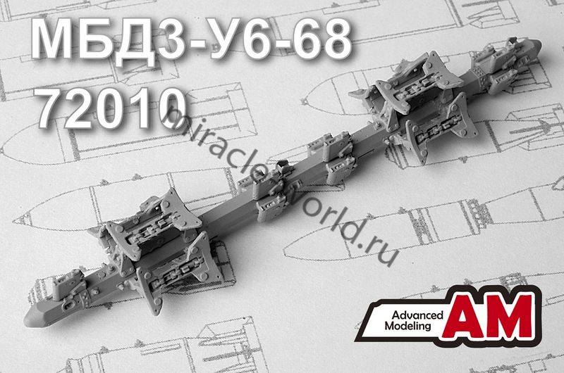 Дополнение для сборных моделей советской / российской авиации (ВКС) МБД3-У6-68, многозамковый балочный держатель (2шт. балочных держателя в наборе + декаль) в масштабе 1/72 от фирмы Advanced Modeling (артикул 72010).