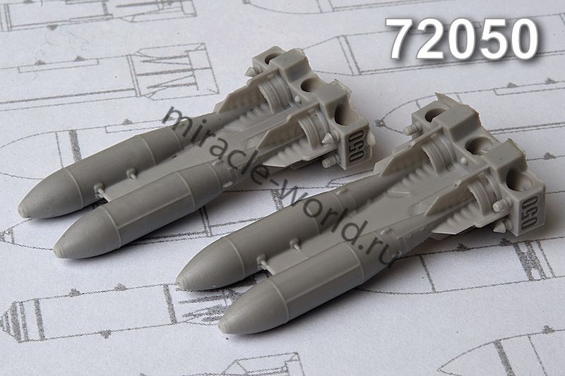 Дополнение для сборных моделей советской / российской авиации (ВКС) ОФАБ-250Т, осколочно-фугасная авиабомба калибра 250 кг (4шт. в наборе + декаль) в масштабе 1/72 от фирмы Advanced Modeling (артикул 72050).
