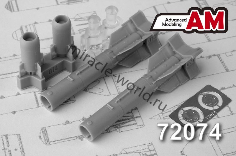 Дополнение для сборных моделей советской / российской авиации (ВКС) КАБ-500Кр Корректируемая авиационная бомба калибра 500 кг с телевизионной системой наведения (2шт. в наборе + фототравление + декаль) в масштабе 1/72 от фирмы Advanced Modeling (артикул 72074).
