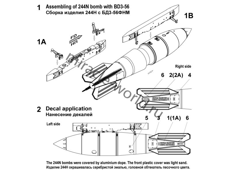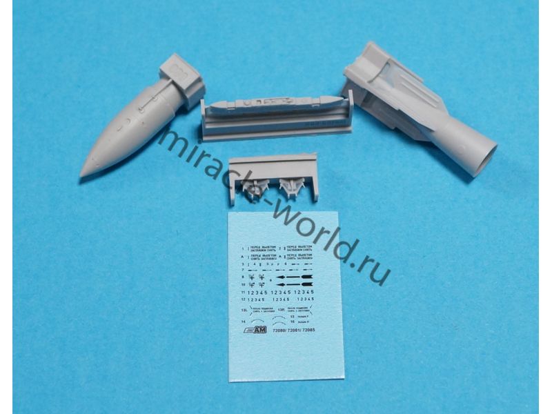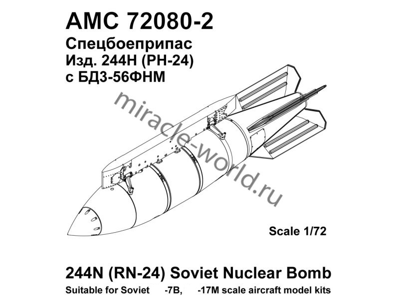 Дополнение для сборных моделей советской / российской авиации (ВКС) Изделие 244Н (РН-24) спецбоеприпас с балочным держателем БД3-56ФНМ (1шт. в наборе + балочный держатель + декаль) в масштабе 1/72 от фирмы Advanced Modeling (артикул 72080-2).