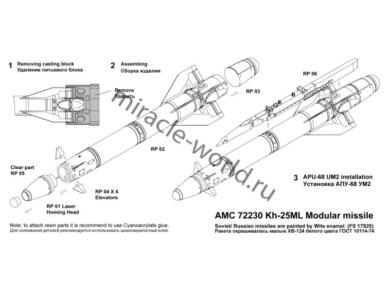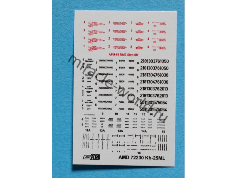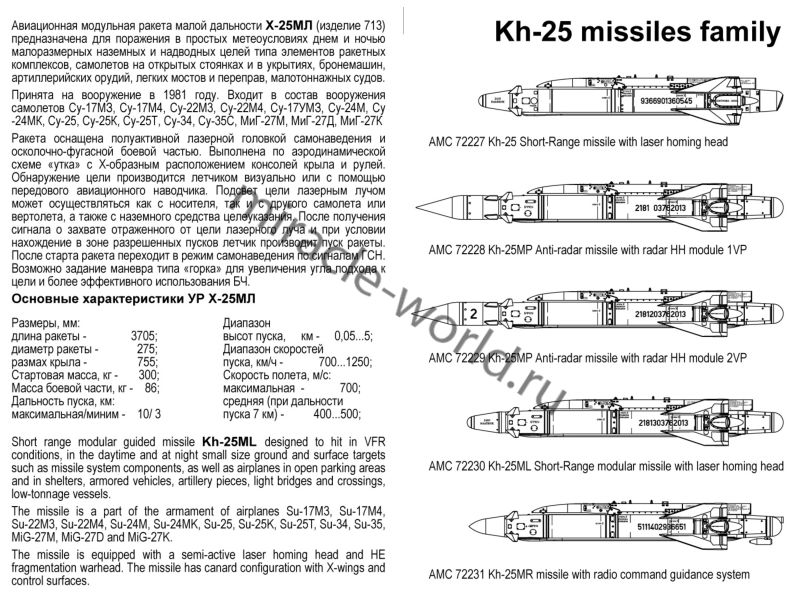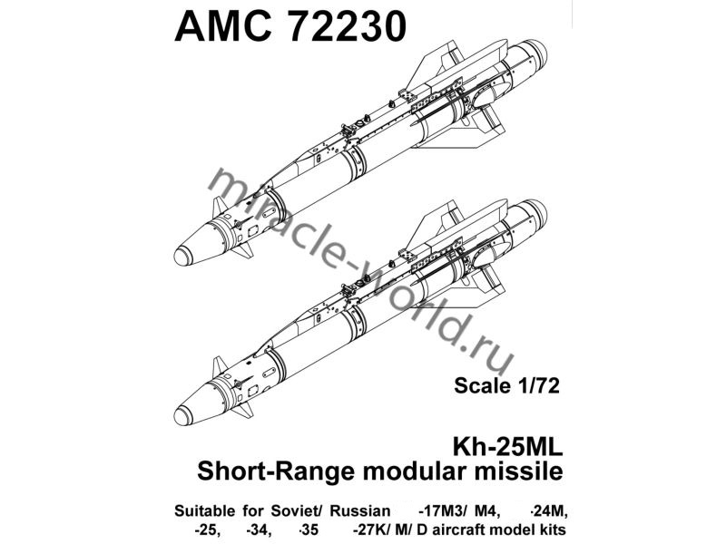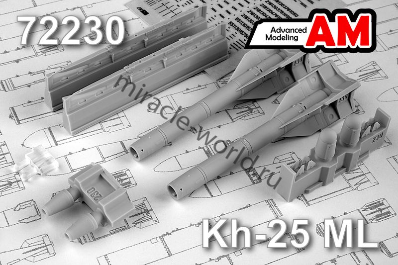 Дополнение для сборных моделей советской / российской авиации (ВКС) Х-25МЛ «изделие 713» Авиационная управляемая ракета класса «Воздух-поверхность» (2шт. в наборе + декаль) в масштабе 1/72 от фирмы Advanced Modeling (артикул 72230).