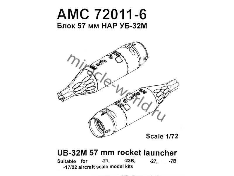 Дополнение для сборных моделей советской / российской авиации (ВКС) УБ-32М блок НАР (2шт. блока НАР в наборе + фототравление + декаль) в масштабе 1/72 от фирмы Advanced Modeling (артикул 72011-6).