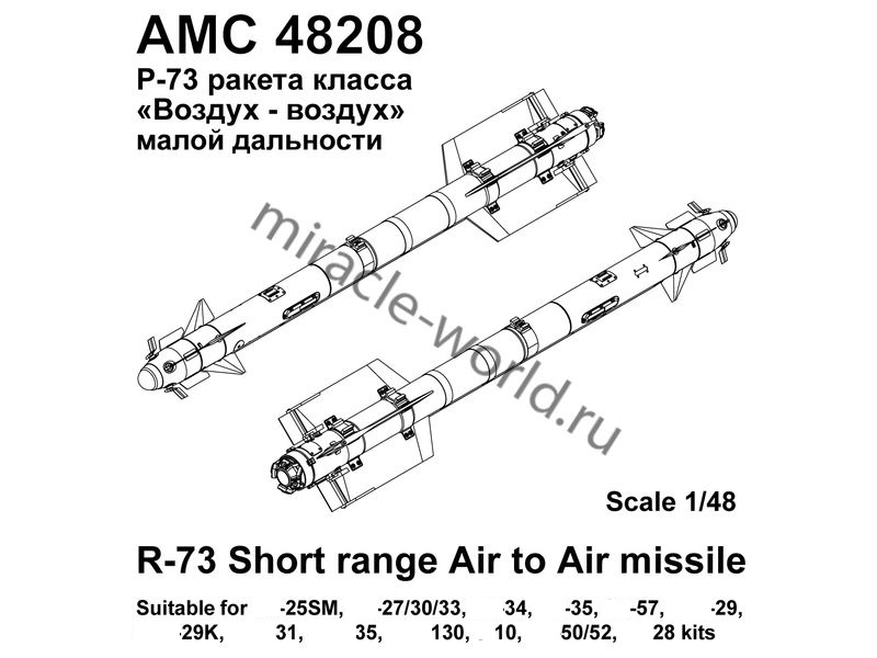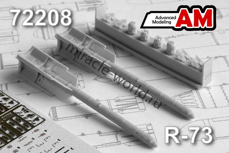Дополнение для сборных моделей советской / российской авиации (ВКС) Р-73 авиационная управляемая ракета малой дальности класса «Воздух-воздух» (2шт. в наборе + фототравление + декаль) в масштабе 1/72 от фирмы Advanced Modeling (артикул 72208).