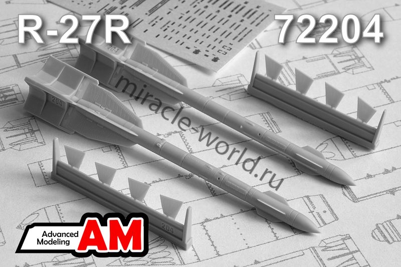Дополнение для сборных моделей советской / российской авиации (ВКС) Р-27Р Авиационная управляемая ракета класса «Воздух-воздух» (2шт. в наборе + декаль) в масштабе 1/72 от фирмы Advanced Modeling (артикул 72204).