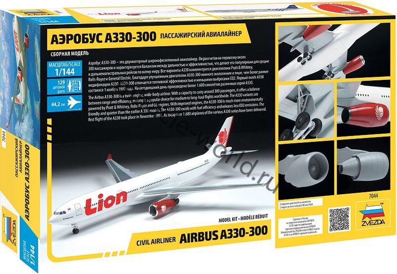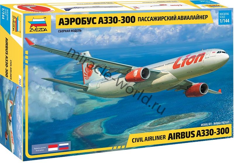 Сборная модель европейского пассажирского самолета Airbus A330-300 в масштабе 1/144 от фирмы Звезда / Zvezda (артикул 7044).