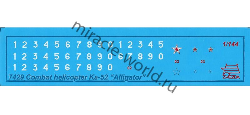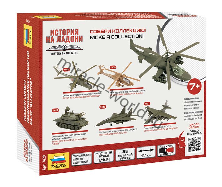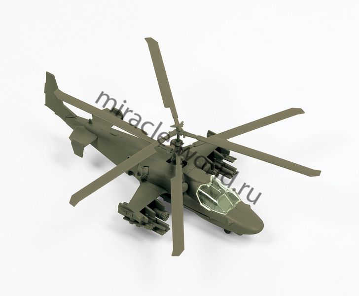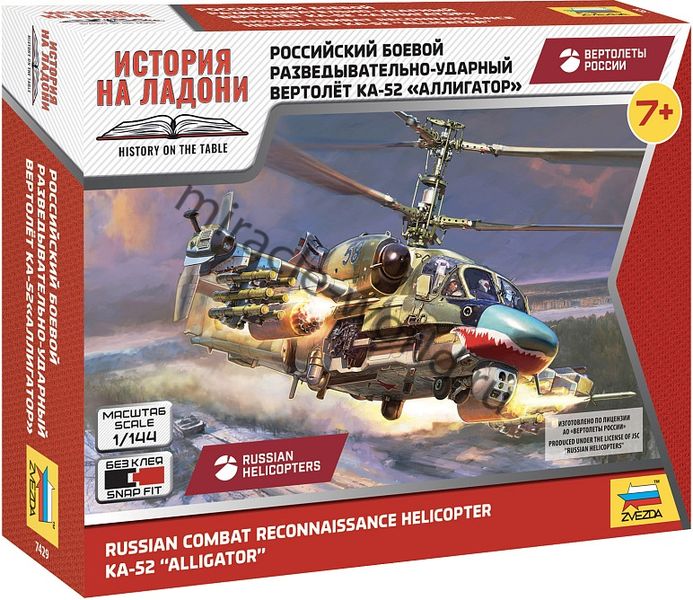 Сборная модель российского многоцелевого ударного вертолета Ка-52 "Аллигатор" в масштабе 1/144 от фирмы Звезда / Zvezda (артикул 7429).