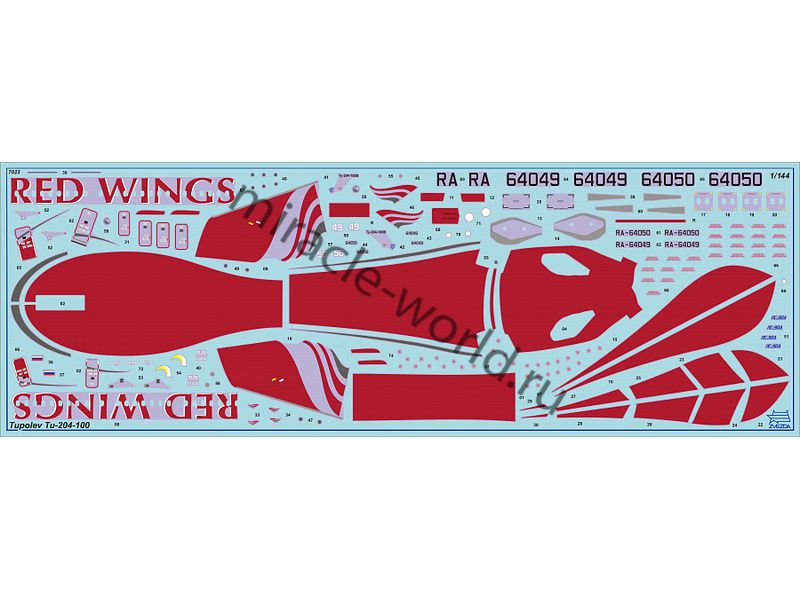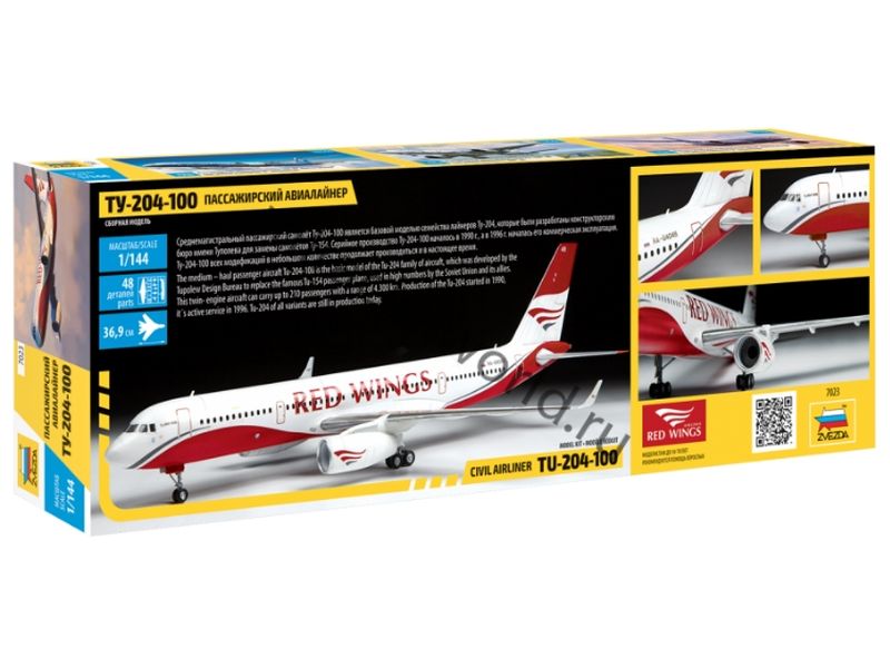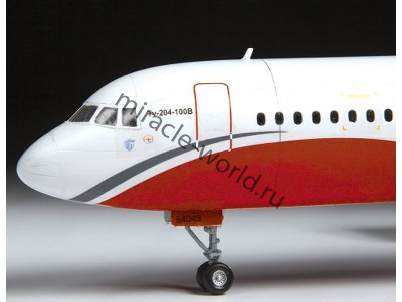 Сборная модель советского / российского пассажирского самолета Ту-204-100 в масштабе 1/144 от фирмы Звезда / Zvezda (артикул 7023).