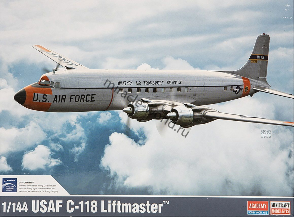 Сборная модель американского дальнего военно-транспортного самолета Douglas C-118 "Liftmaster" в масштабе 1/144 от фирмы Academy (артикул 12634).