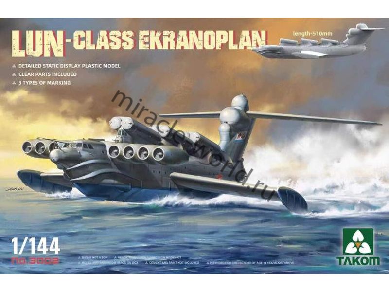 Сборная модель советского ракетного корабля - экраноплана “Лунь” проект 903 в масштабе 1/144 от фирмы Takom (артикул 3002).