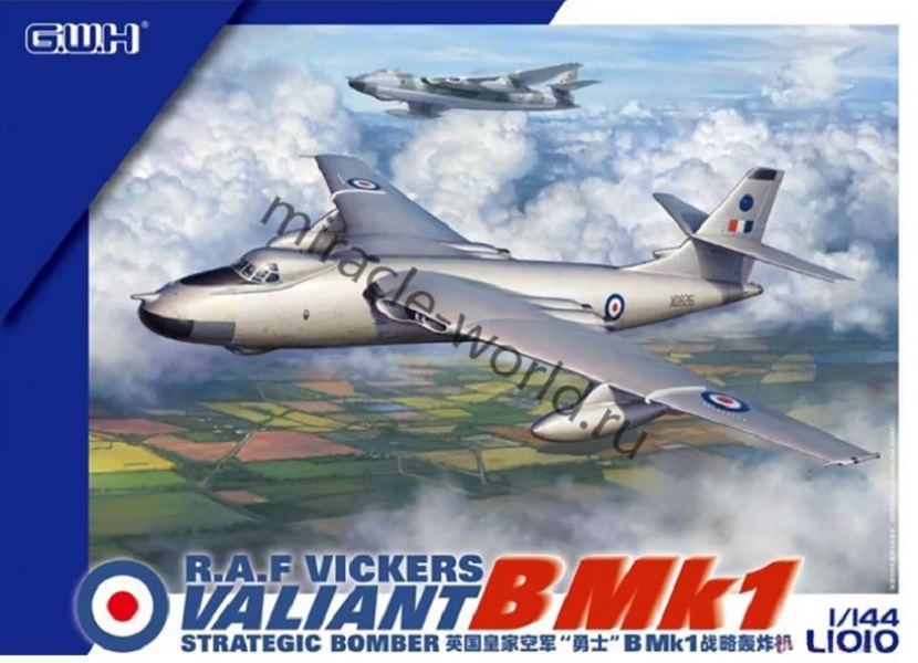 Сборная модель британского стратегического бомбардировщика Vickers Valiant B.Mk.1 в масштабе 1/144 от фирмы Great Wall Hobby (артикул L1010).