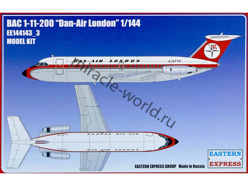Сборная модель британского пассажирского самолета BAC 1-11-200 / BAC One-Eleven "Dan-Air London" в масштабе 1/144 от фирмы Восточный Экспресс / Eastern Express (артикул 144143-3).