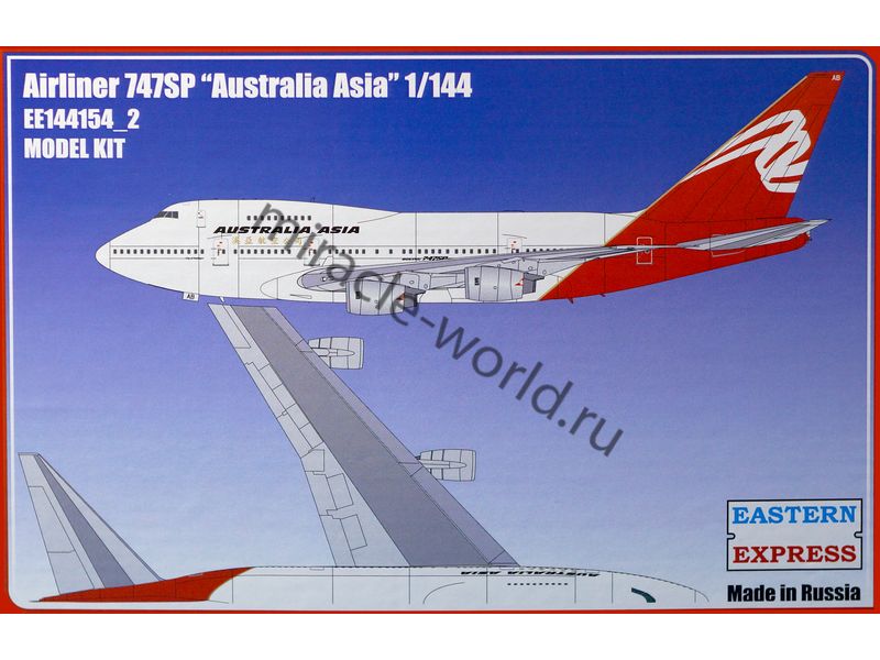 Сборная модель американского пассажирского самолета Boeing 747 SP RR "Auastralia Asia" в масштабе 1/144 от фирмы Восточный Экспресс / Eastern Express (артикул 144154-2).