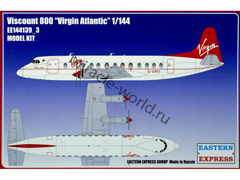 Сборная модель британского турбовинтового пассажирского самолета Vickers Viscount Type 800 "Virgin" в масштабе 1/144 от фирмы Восточный Экспресс / Eastern Express (артикул 144139-3).