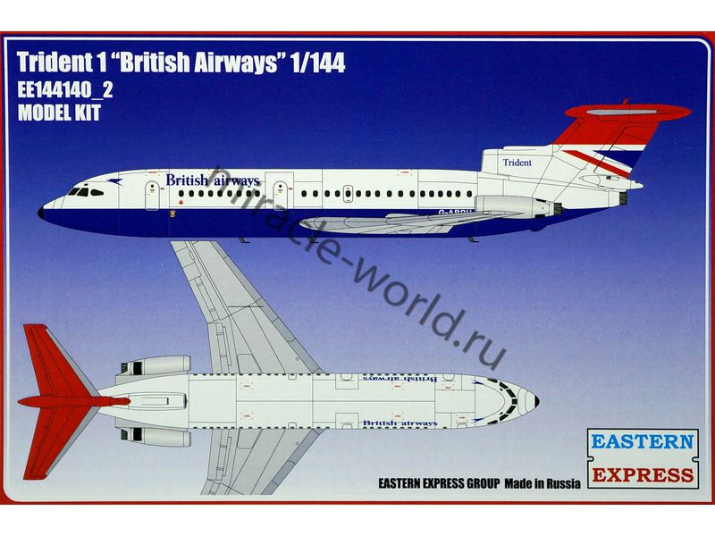 Сборная модель британского пассажирского самолета Hawker Siddeley HS 121 / D.H.121 Trident 1 "British Airways" в масштабе 1/144 от фирмы Восточный Экспресс / Eastern Express (артикул 144140-2).