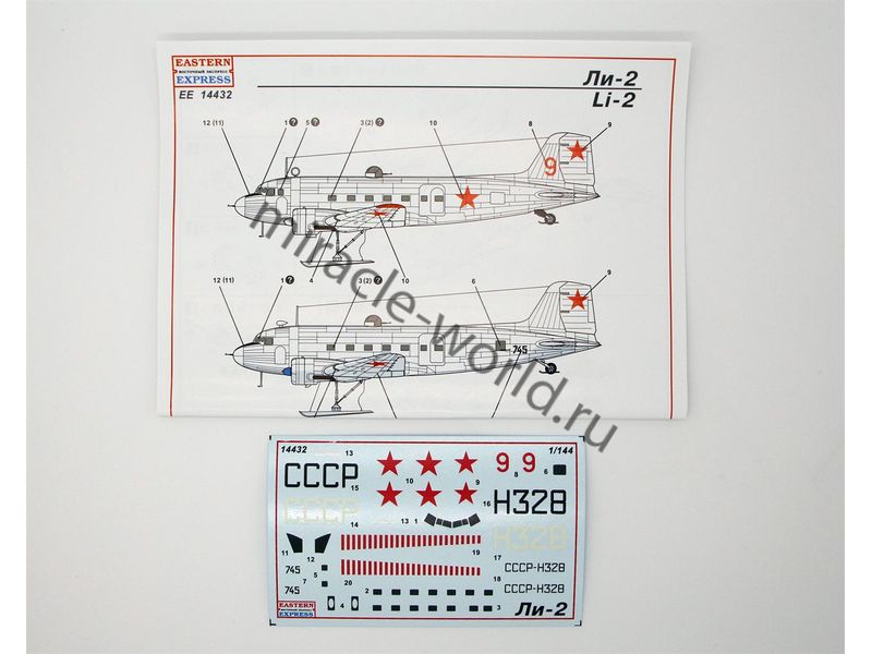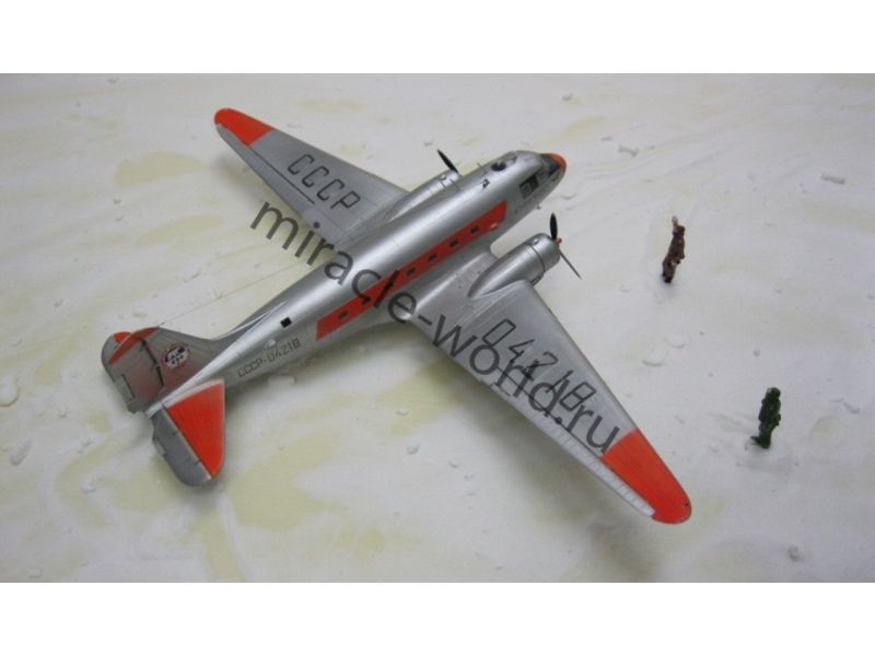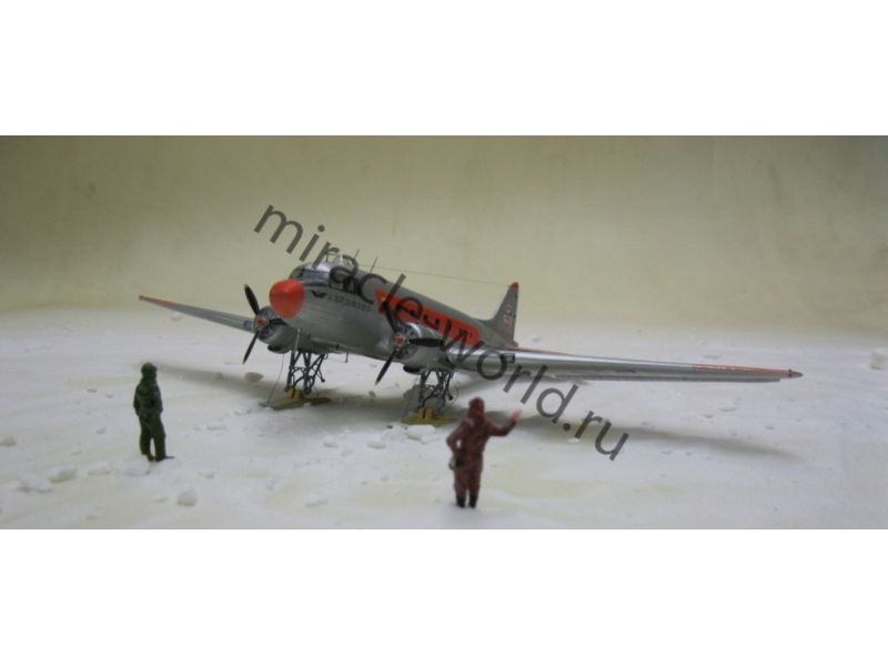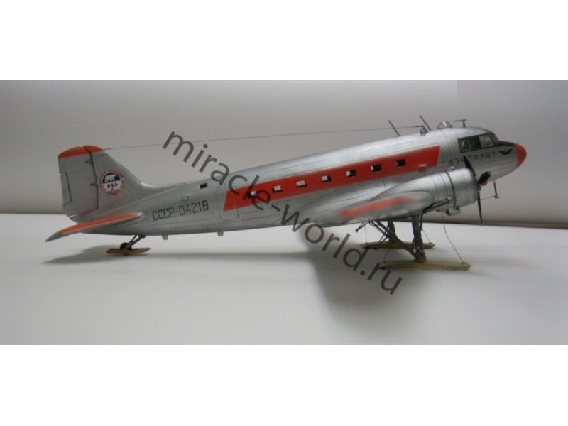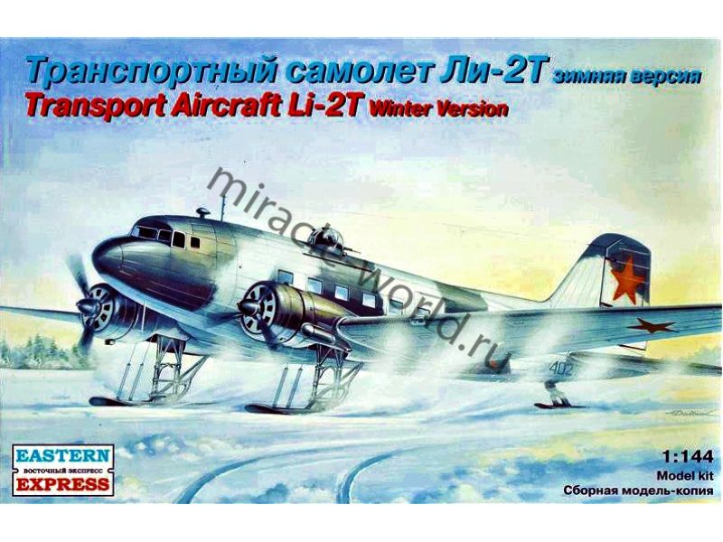 Сборная модель советского военно-транспортного самолета в зимней версии Ли-2Т / Самолет Лисунов тип 2Т в масштабе 1/144 от фирмы Восточный Экспресс / Eastern Express (артикул 14432).