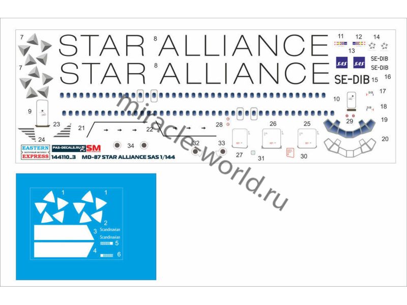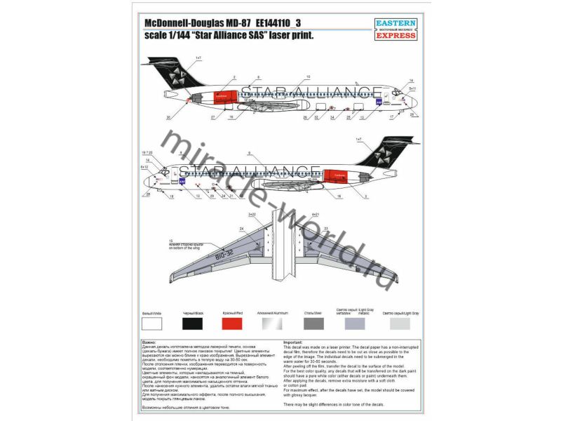 Сборная модель американского пассажирского самолета McDonnell Douglas MD-87 "Star Alliance SAS" в масштабе 1/144 от фирмы Восточный Экспресс / Eastern Express (артикул 144110-3).