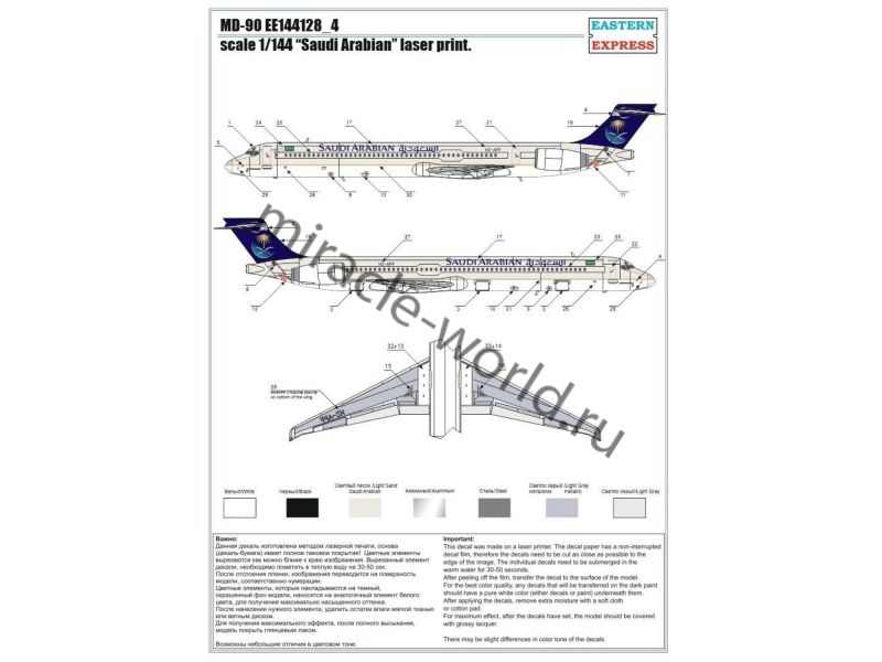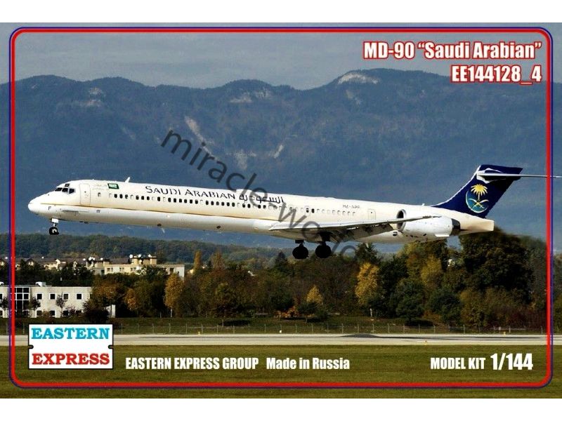 Сборная модель американского пассажирского самолета McDonnell Douglas MD-90 "Saudi Arabian" в масштабе 1/144 от фирмы Восточный Экспресс / Eastern Express (артикул 144128-4).