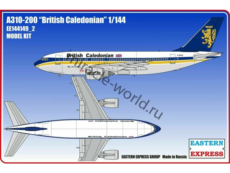 Сборная модель европейского пассажирского самолета Airbus A310-200 / A312 "British Caledonian" в масштабе 1/144 от фирмы Восточный Экспресс / Eastern Express (артикул 144149-2).