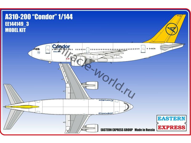 Сборная модель европейского пассажирского самолета Airbus A310-200 / A312 "Condor" в масштабе 1/144 от фирмы Восточный Экспресс / Eastern Express (артикул 144149-3).