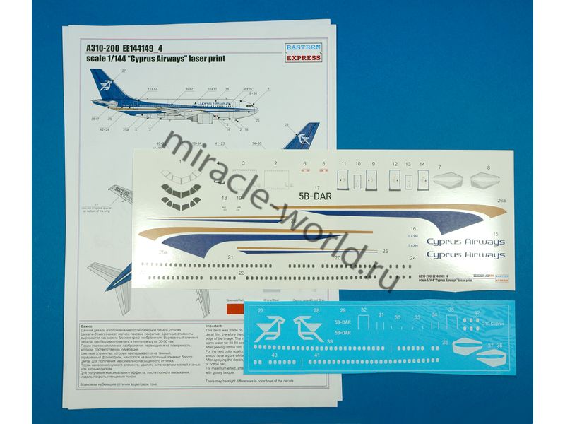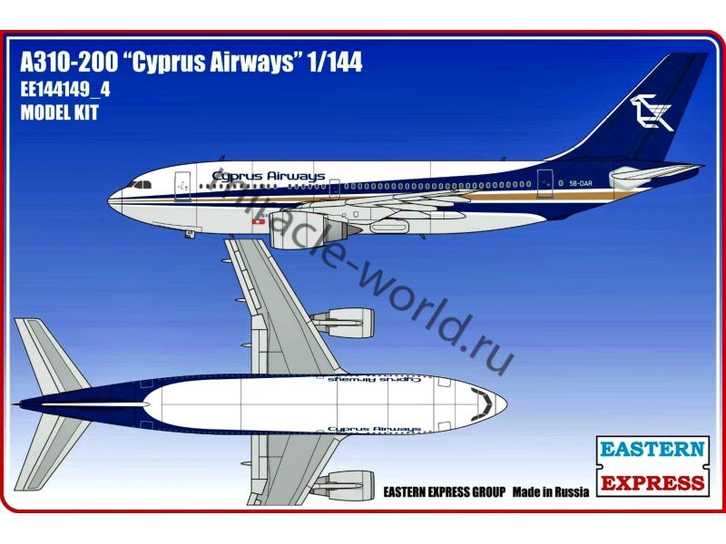 Сборная модель европейского пассажирского самолета Airbus A310-200 / A312 "Cyprus Airways" в масштабе 1/144 от фирмы Восточный Экспресс / Eastern Express (артикул 144149-4).