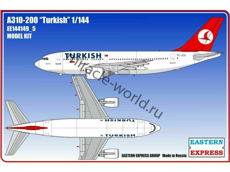 Сборная модель европейского пассажирского самолета Airbus A310-200 / A312 "Turkish" в масштабе 1/144 от фирмы Восточный Экспресс / Eastern Express (артикул 144149-5).