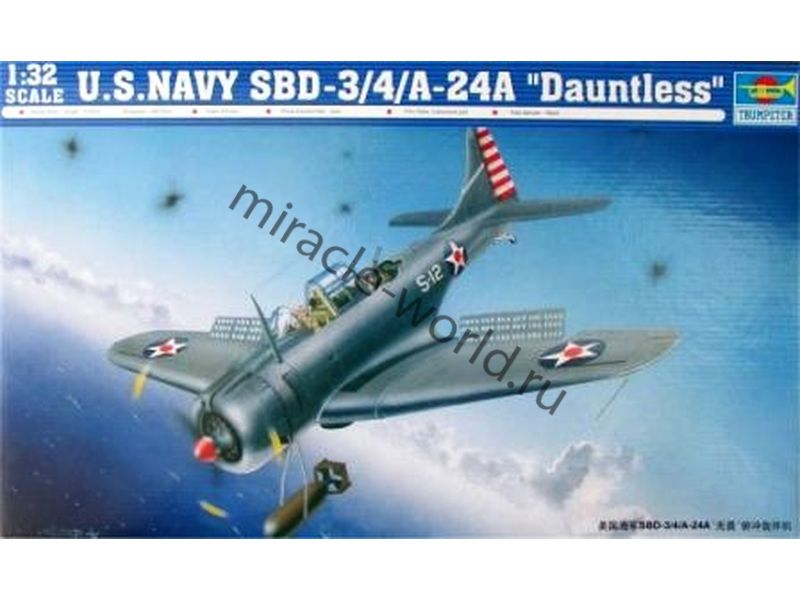 Сборная модель американского палубного пикирующего бомбардировщика SBD-3 / SBD-4 / A-24A "Dauntless" в масштабе 1/32 от фирмы Trumpeter (артикул 02242).