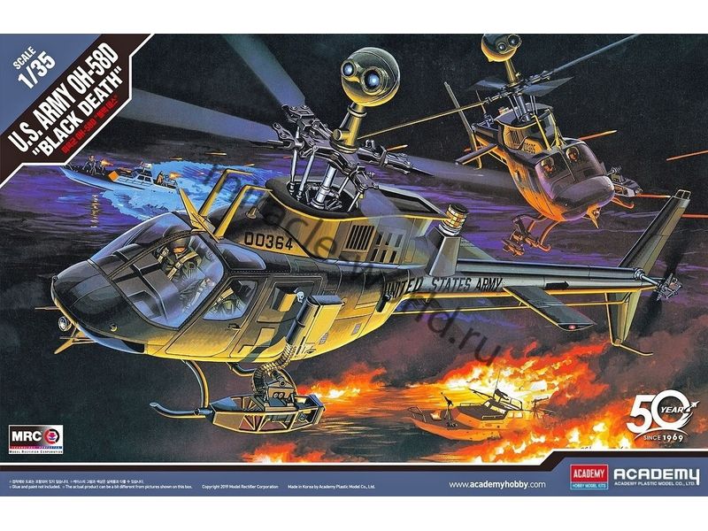 Сборная модель вертолета OH-58D "Kiowa Warrior / Black Death" в масштабе 1/35 от фирмы Academy (артикул 12131).