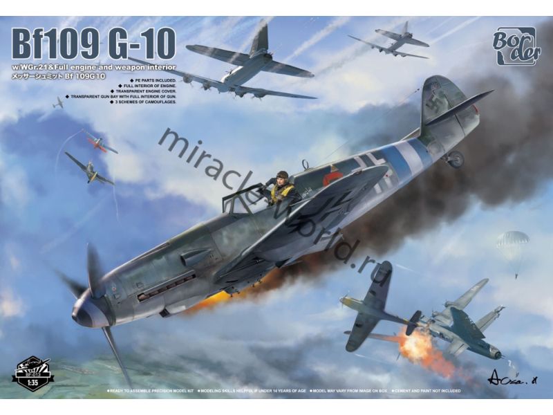 Сборная модель немецкого истребителя Messerschmitt Bf-109G-10 w/WGr.21 с интерьером в масштабе 1/35 от фирмы Border Model (артикул BF-013).
