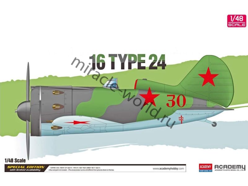 Сборная модель фронтового истребителя И-16 тип 24 в масштабе 1/48 от фирмы Academy (артикул 12314)