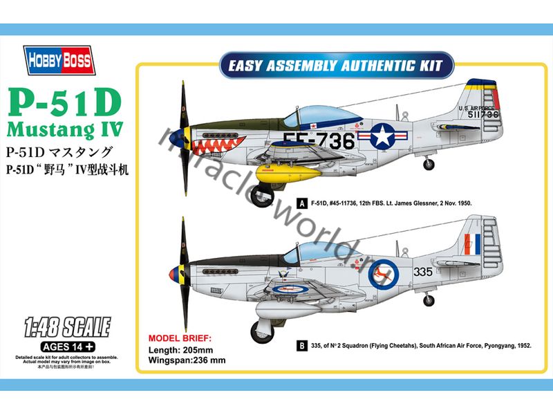 Сборная модель американского истребителя North American P-51D "Mustang IV" в масштабе 1/48 от фирмы Hobby Boss (артикул 85806).