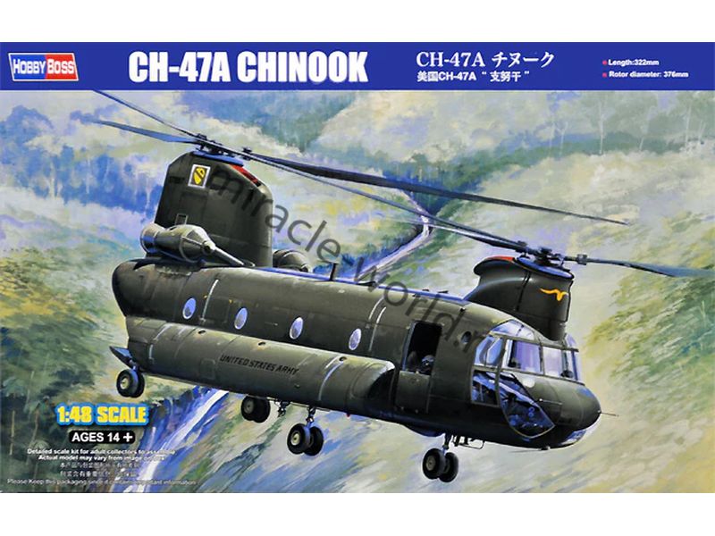 Сборная модель американского многоцелевого военно-транспортного вертолета Boeing Vertol CH-47A "Chinook" в масштабе 1/48 от фирмы Hobby Boss (артикул 81772).