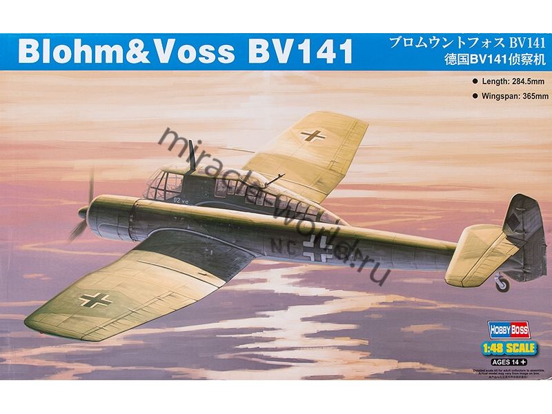 Сборная модель немецкого тактического разведчика Blohm und Voss BV-141 в масштабе 1/48 от фирмы Hobby Boss (артикул 81728).