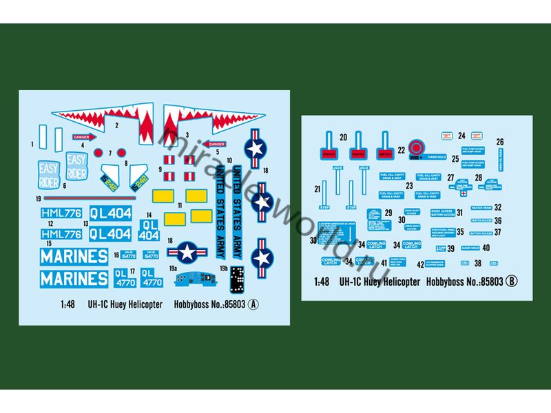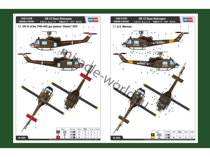 Сборная модель американского многоцелевого вертолета Bell UH-1C "Iroquois / Huey" в масштабе 1/48 от фирмы Hobby Boss (артикул 85803).