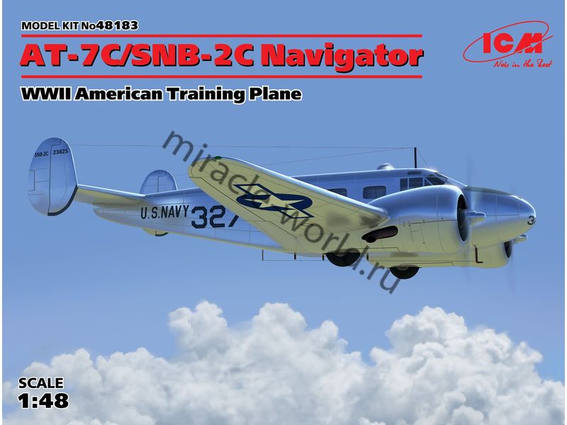 Сборная модель американского легкого пассажирского самолета, так же использовался как армейский учебный самолет Beech AT-7C / SNB-2C / Beechcraft Model 18 в масштабе 1/48 от фирмы ICM (артикул 48183).
