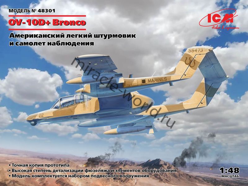 Сборная модель американского легкого многоцелового штурмовика North American OV-10D "Bronco" в масштабе 1/48 от фирмы ICM (артикул 48301).