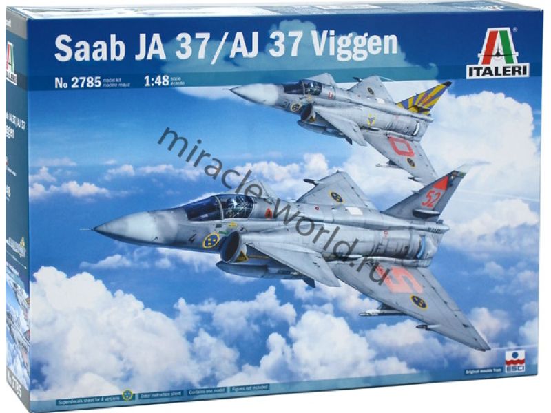 Сборная модель шведского тактического ударного истребителя SAAB JA 37 / AJ 37 "Viggen" в масштабе 1/48 от фирмы Italeri (артикул 2785).