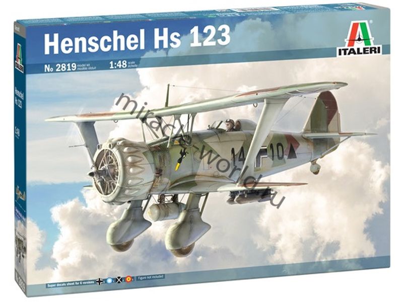 Сборная модель немецкого пикирующего бомбардировщика, штурмовика Henschel Hs-123 в масштабе 1/48 от фирмы Italeri (артикул 2819).